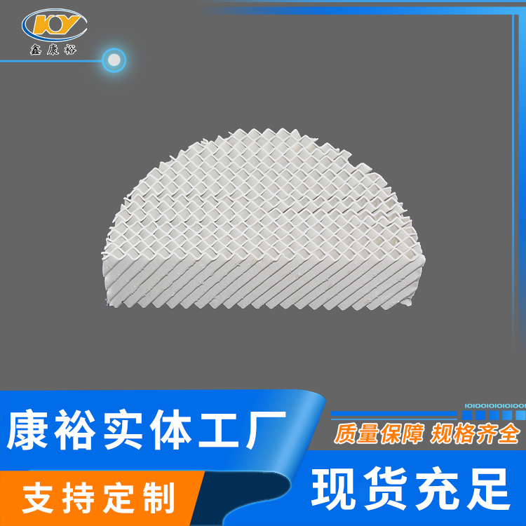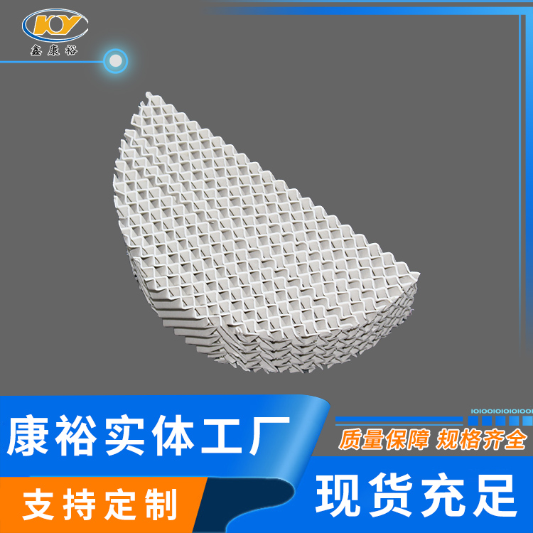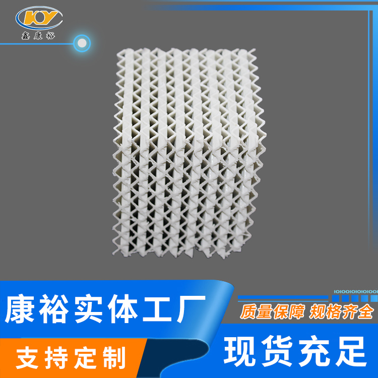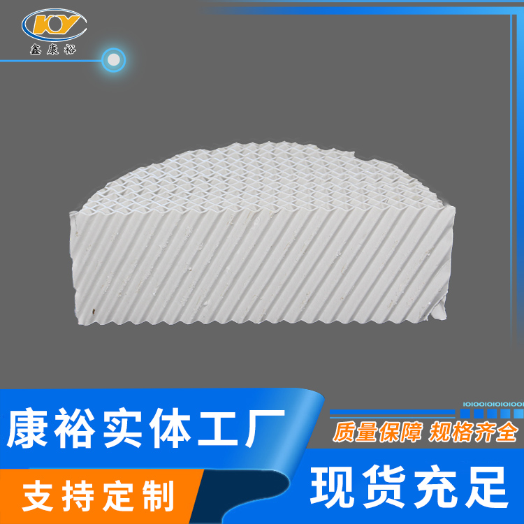 陶瓷波紋填料是一種新型規(guī)整填料,它是由許多具有相同幾何形狀的填料單元體組成。由于陶瓷的結(jié)構(gòu),具有良好的親水性能,其表面可形成極薄的液膜的湍動(dòng)及氣流的傾斜曲折通道能氣流但又不阻擋氣流使陶瓷填料能與金屬填料相匹敵,而其耐腐蝕、耐高溫性能金屬填料卻無(wú)法相比。表面結(jié)構(gòu)有良好的濕潤(rùn)性能,能使液體加快流動(dòng)、使填料滯液量降至低。從而降低了過(guò)熱、聚合和結(jié)焦的機(jī)會(huì)。