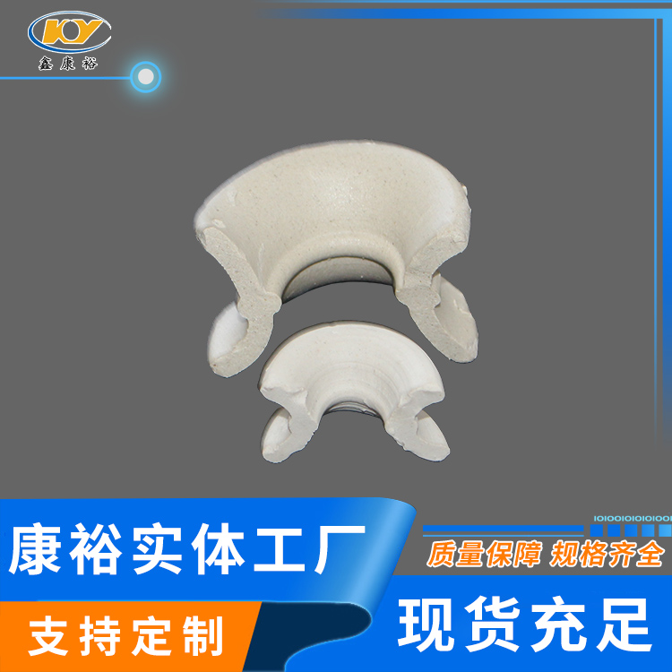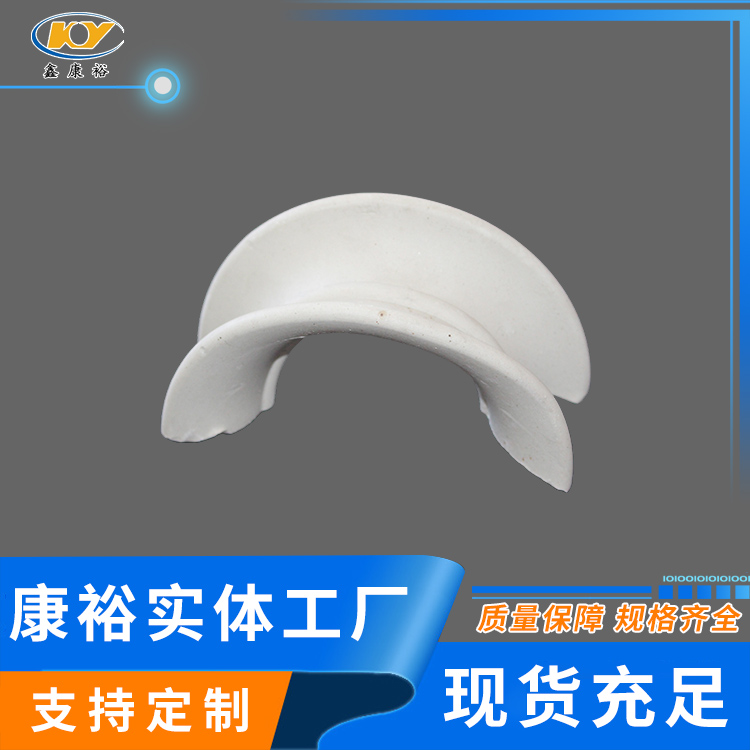 陶瓷矩鞍環(huán)屬于陶瓷填料一種型號(hào),陶瓷矩鞍環(huán)采用連續(xù)擠出的工藝進(jìn)行加工,與同種材質(zhì)的拉西環(huán)填料相比,陶瓷矩鞍環(huán)具有通量大、壓降低、效率高等優(yōu)點(diǎn)。矩鞍環(huán)填料床層具有較大的空隙率,床層內(nèi)多為圓弧形液體通道,減少了氣體通過床層的阻力,也使液體向下流動(dòng)時(shí)的徑向擴(kuò)散系數(shù)減小。